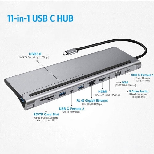 Buy 11 In1 Usb C Hub Type C To 4k Hdmi With Vga Rj45 Card Reader 3 Port Usb3.0 Usb Splitter in Nigeria