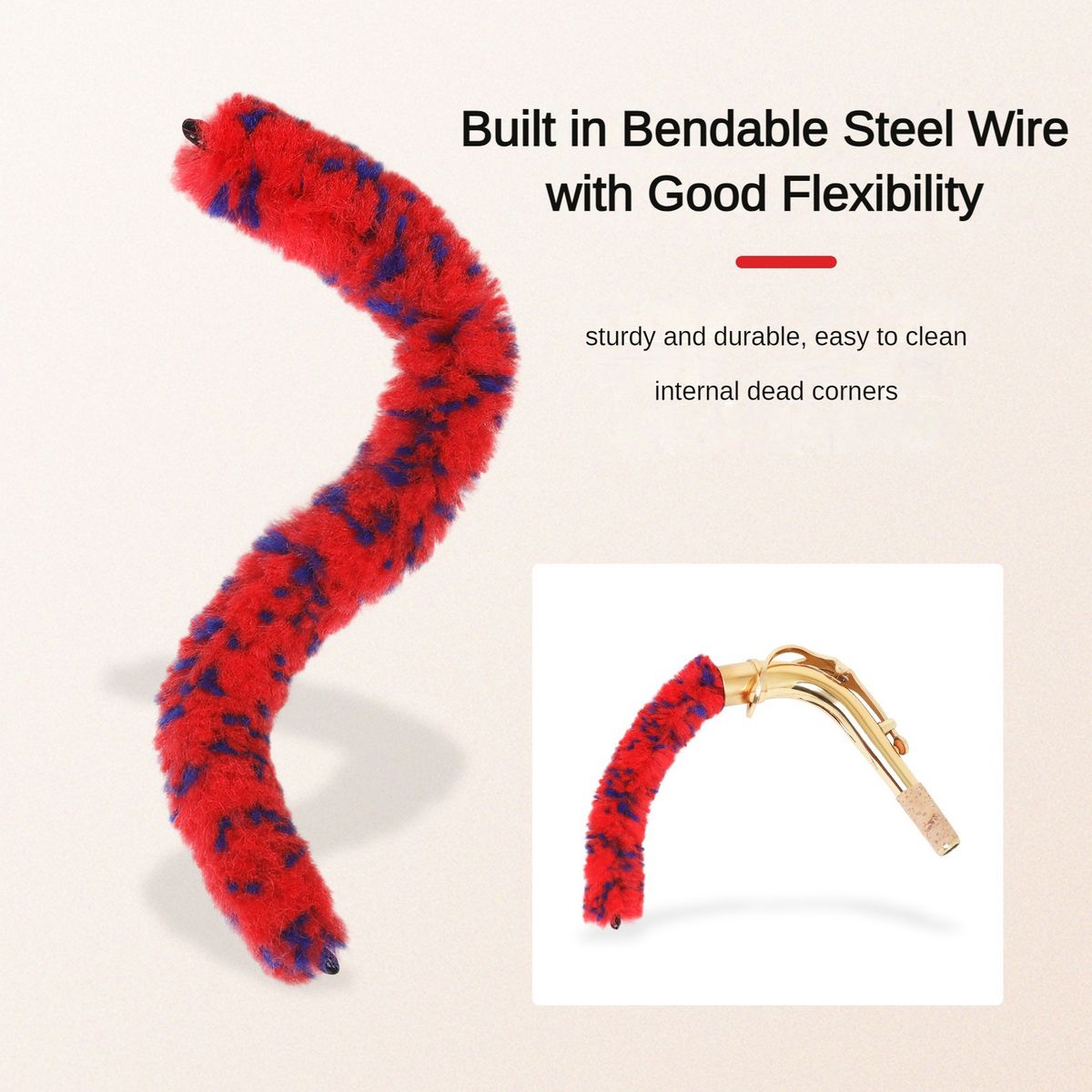 The cleaning rod is used to effectively clean and wipe the moisture in the inner cavity of saxophone bend neck.