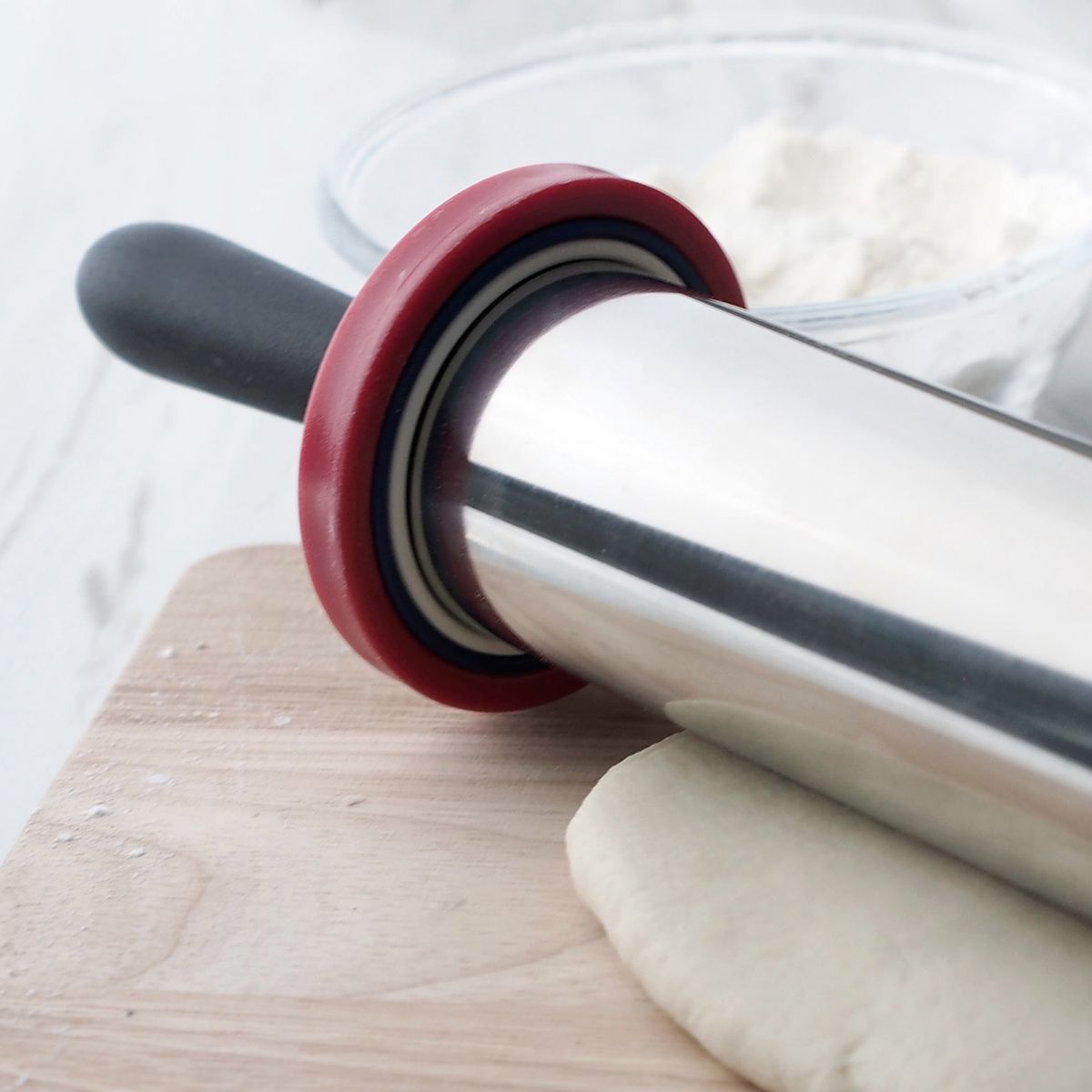 Unlike the wooden rolling pin, the non-stick surface prevents the dough from sticking.