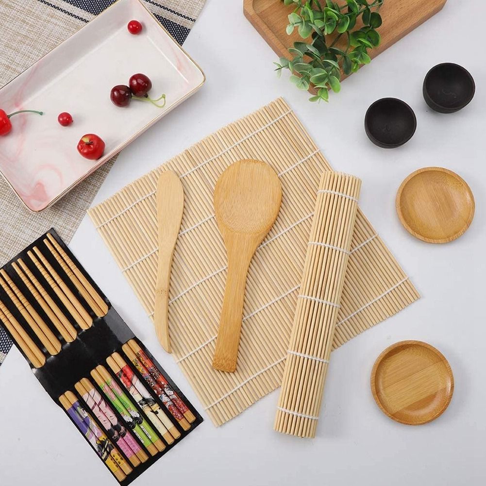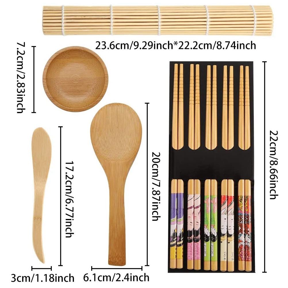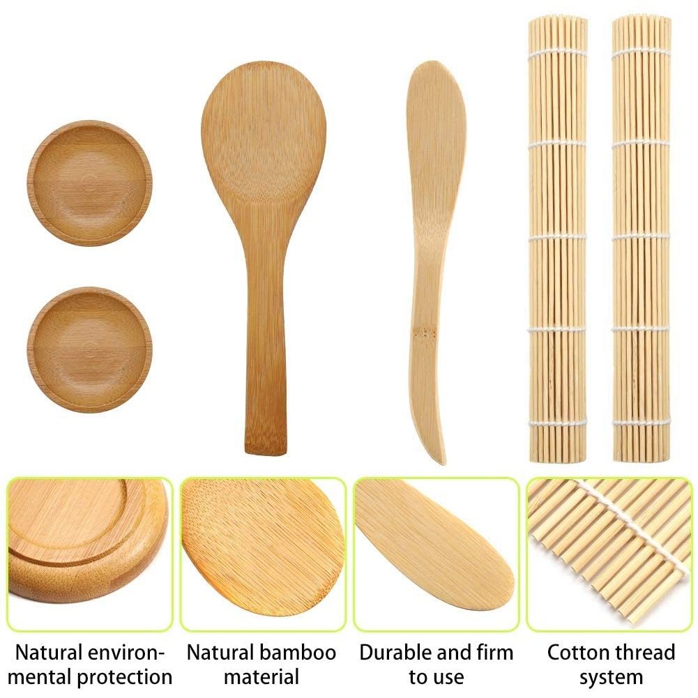 11 Pack Sushi Making Kit Bamboo Include Rolling MatsSafe material: the sushi making kit is made of quality bamboo, durable and reusable; A practical DIY kit for homemade sushi, you can make sushi together with your families