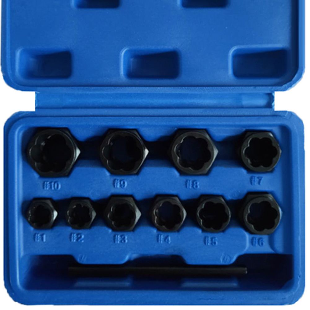 This tool set includes 10pcs extractors which is most commonly needed sizes: 3/8, 13/32, 7/16, 15/32, 13mm, 17/32, 9/16, 5/8, 11/16, 3/4 and a push rod.