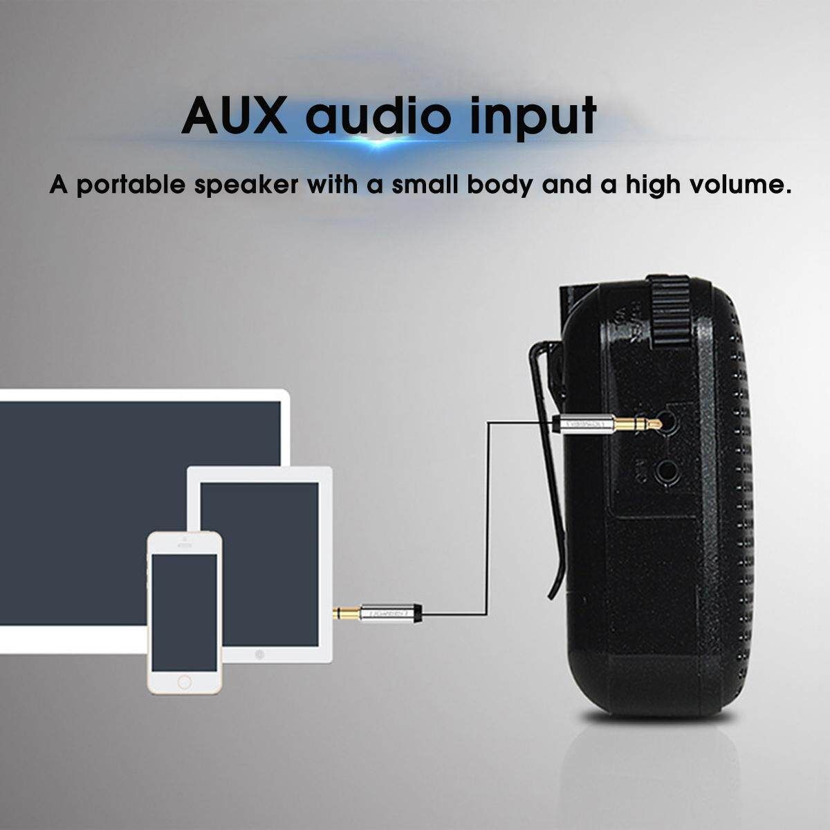 - AUX audio input. A portable speaker with a small body and a high volume.
