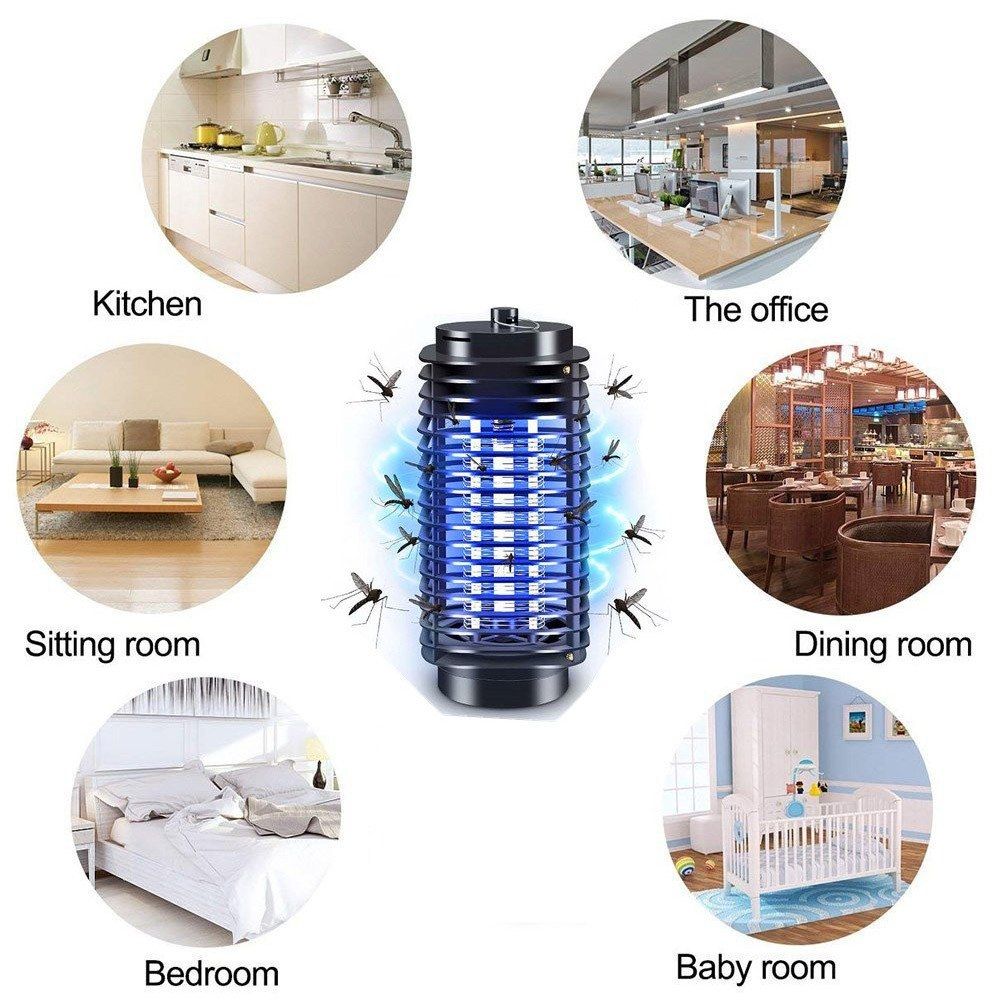 You can barely hear any sound in the usage. No poison, no fumes and no smell. Electric fly mosquito insect killer led lamp for house, patio, office, camping. Just places where needs. It is easy to place