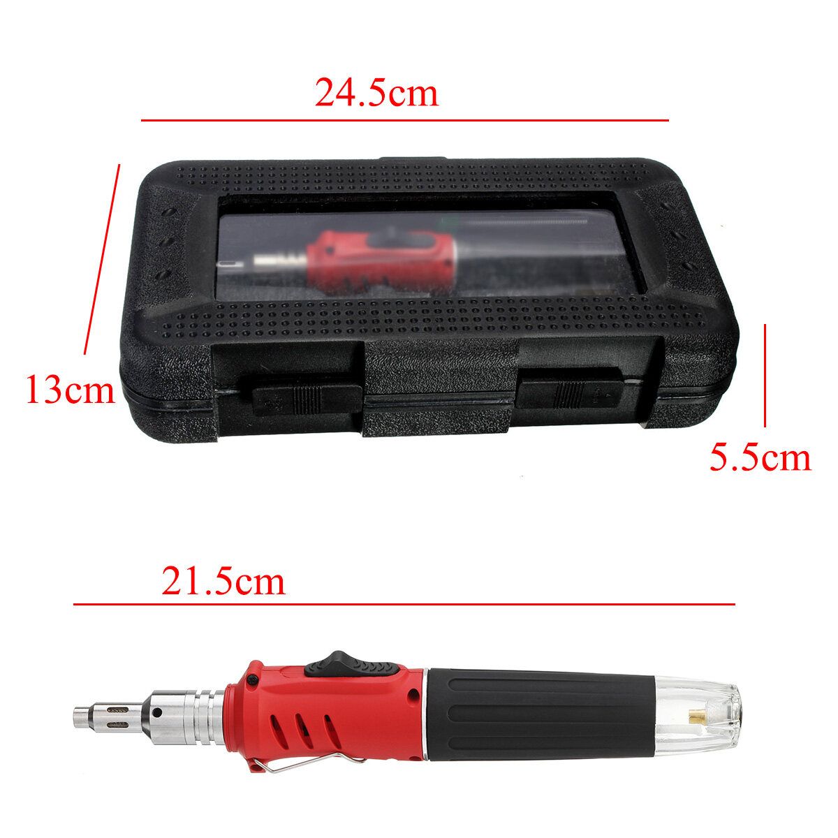 Features:- Pen style design is unique and elegant.- High capacity and excellent performance.- With autoignition function for convenient use.- Compact size, lightweight and portable to carry.- Use gas as its without voltage and wire limitation.- Without location limitation.- Can be used as ordinary iron, very practical.- Transparent design make you have easy access to inside gas.- You can switch to a different connector into welding, iron and features!