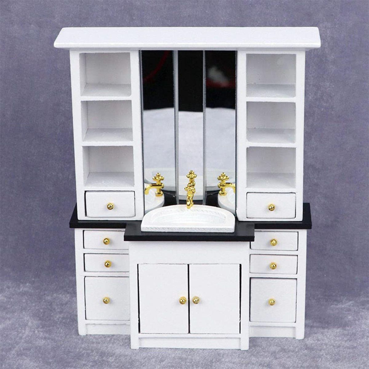 PREMIUM MATERIAL: Made of safe and healthy wooden material, surface. All drawer and cabinet door can be opened. DETAILS: Place it in your doll house bathroom or for more realistic detail.