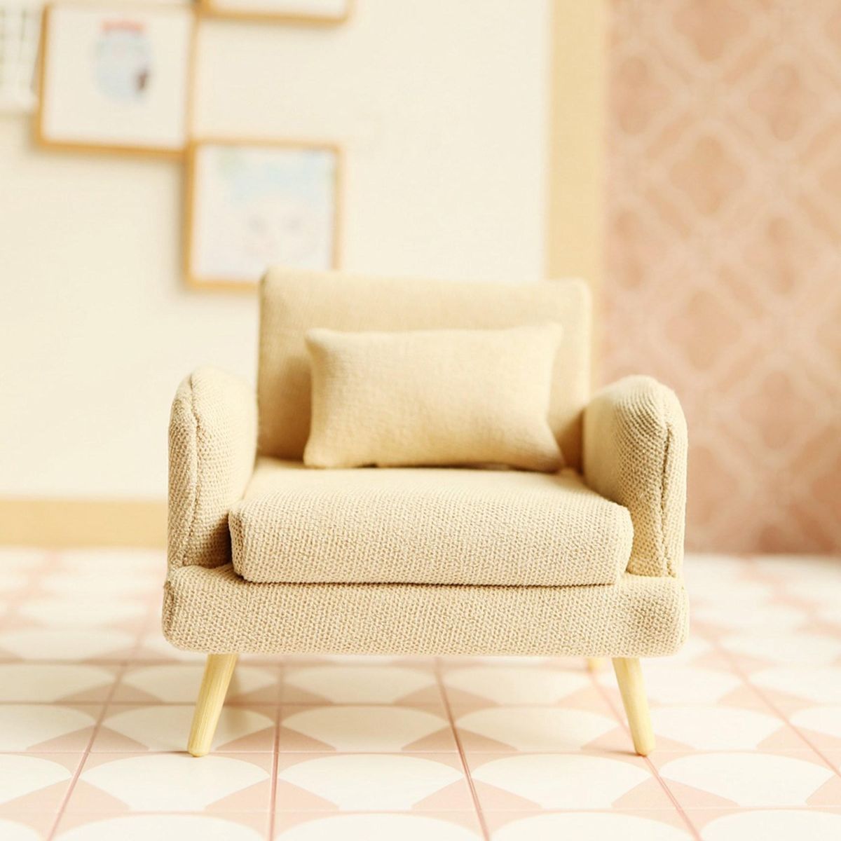 1/12 Dolls House Single Sofa for Dollhouse DecorationDolls House Couch, perfect for interior decor.