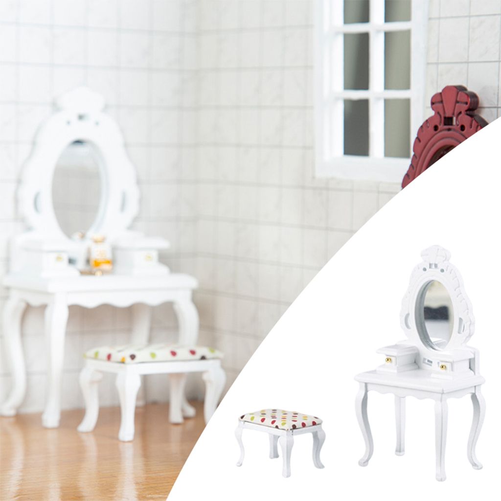 1/12 scale handmade vintage dressing table with stool, perfect for interior decor.