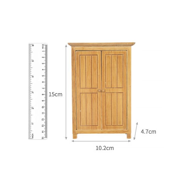 Nice birthday gifts for kids boys girls.Specification:Material: Wooden Size Chart:Approx. 10.2x4.7x15cm / 4x1.85x5.9inchPackage Includes:1 Piece 1/12 Dollhouse Wooden 2 Door WardrobeNote:Please allow 1-3mm measuring deviation due to manual measurement.