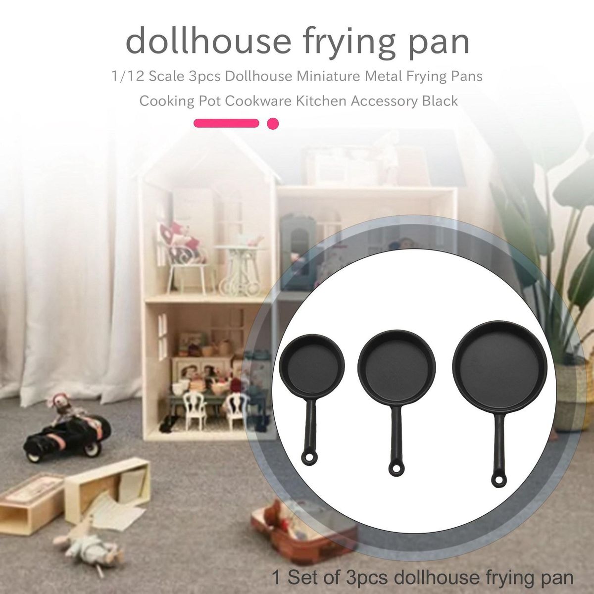 1 Set of 3pcs dollhouse frying pan