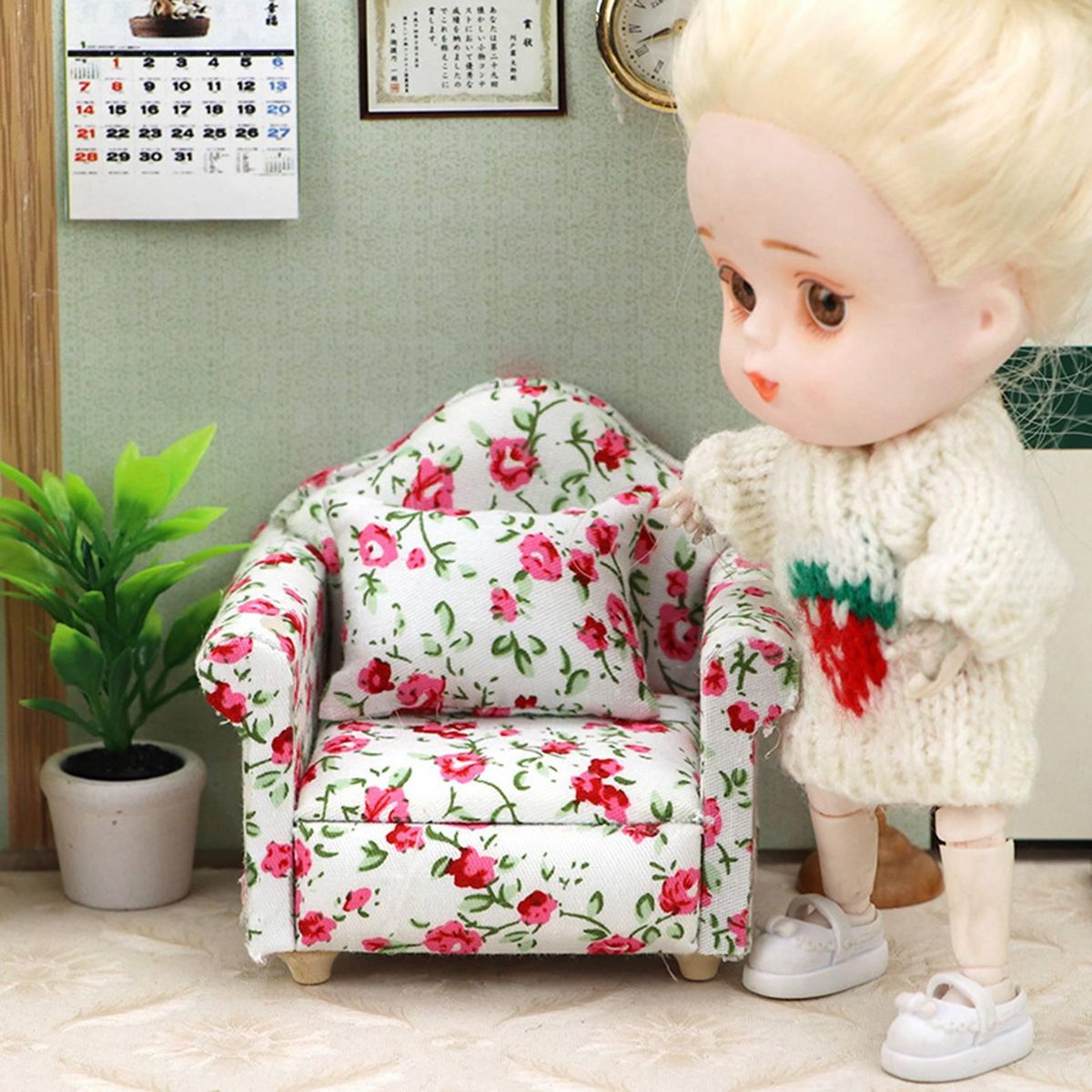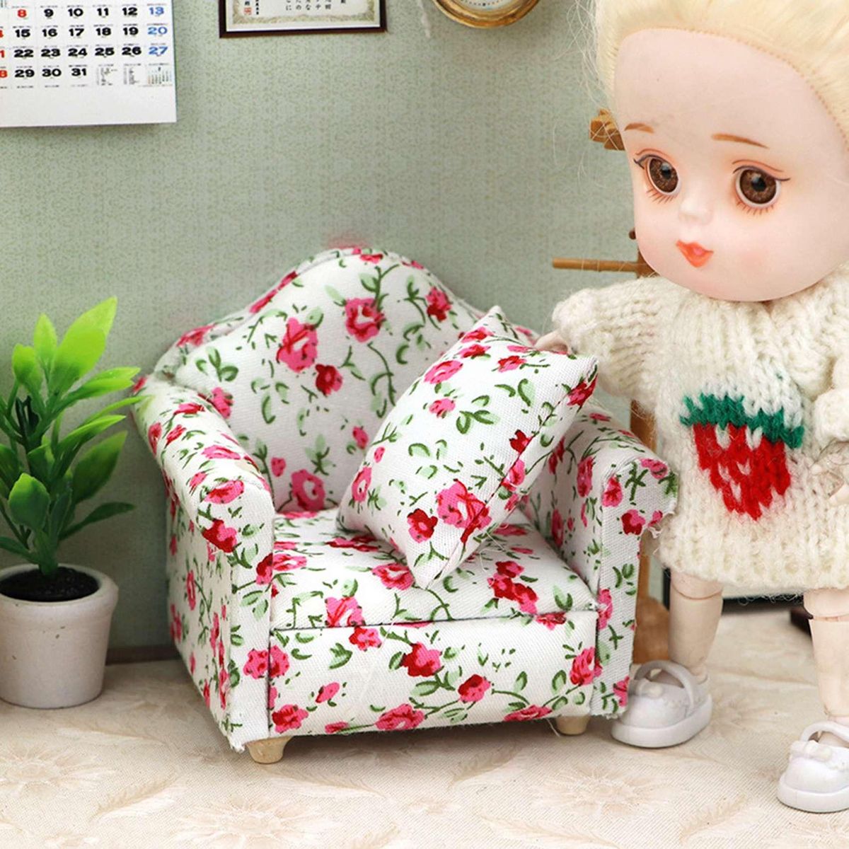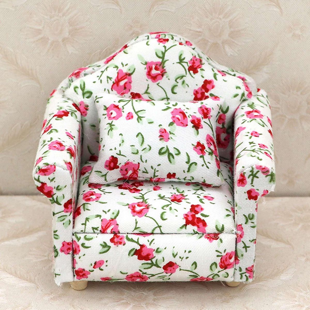 Beautiful 1/12 miniature single sofa armchair with red-white checkered fabric cushion