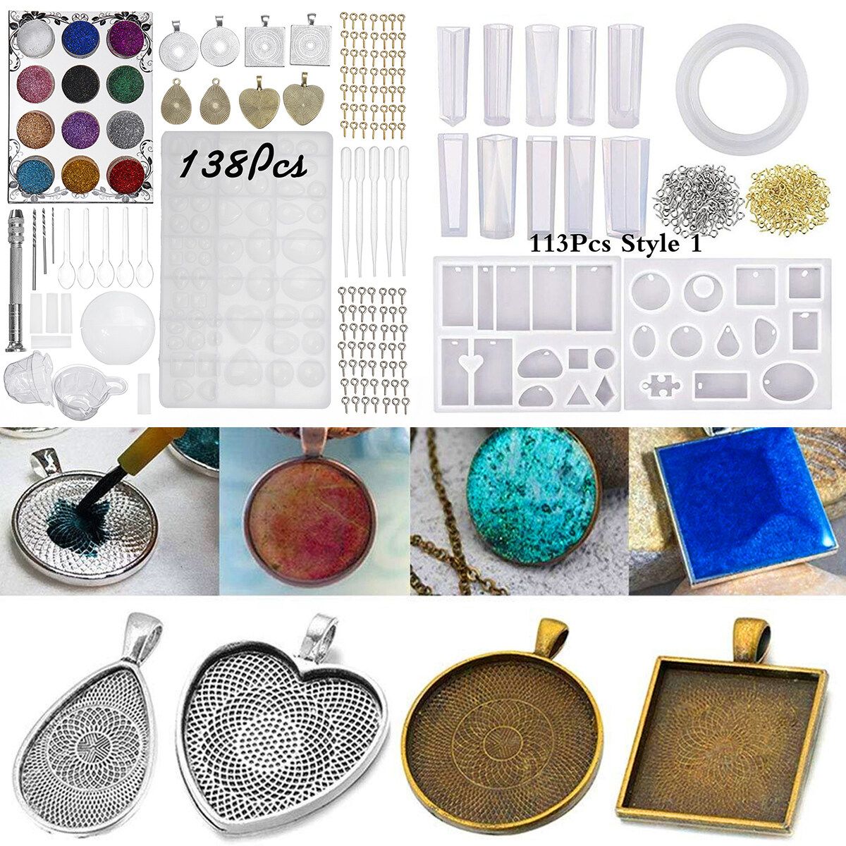 113Pcs/138Pcs Silicone Resin Jewelry Casting Mold with Glitter and Flower Decoration DIY Artcraft Project Gift Pendant Making Tools Set For Beginners