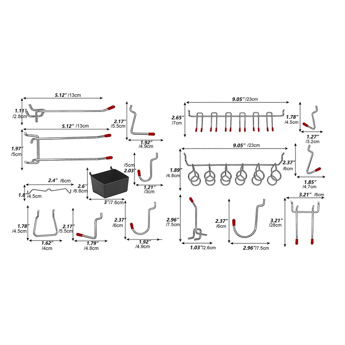 You can install the hook into pegboard holes to prevent tools from falling. And the sturdy construction can provide a strong bearing capacity.