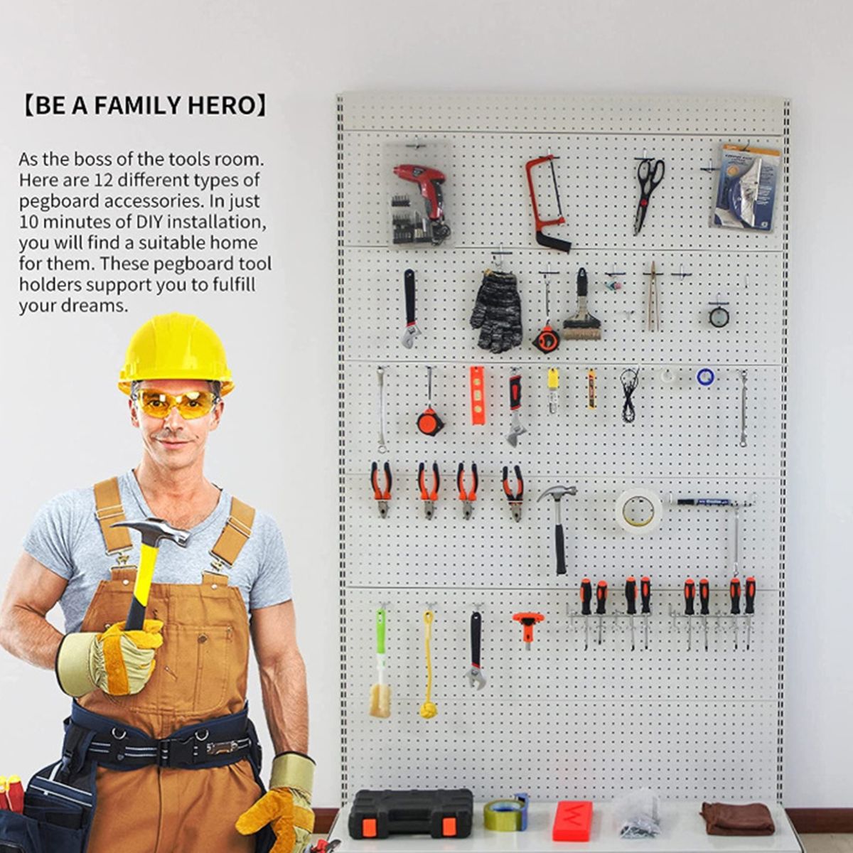 The hook is strong bearing for a sturdy construction. And it can prevent tools from falling when you install it into pegboard holes.