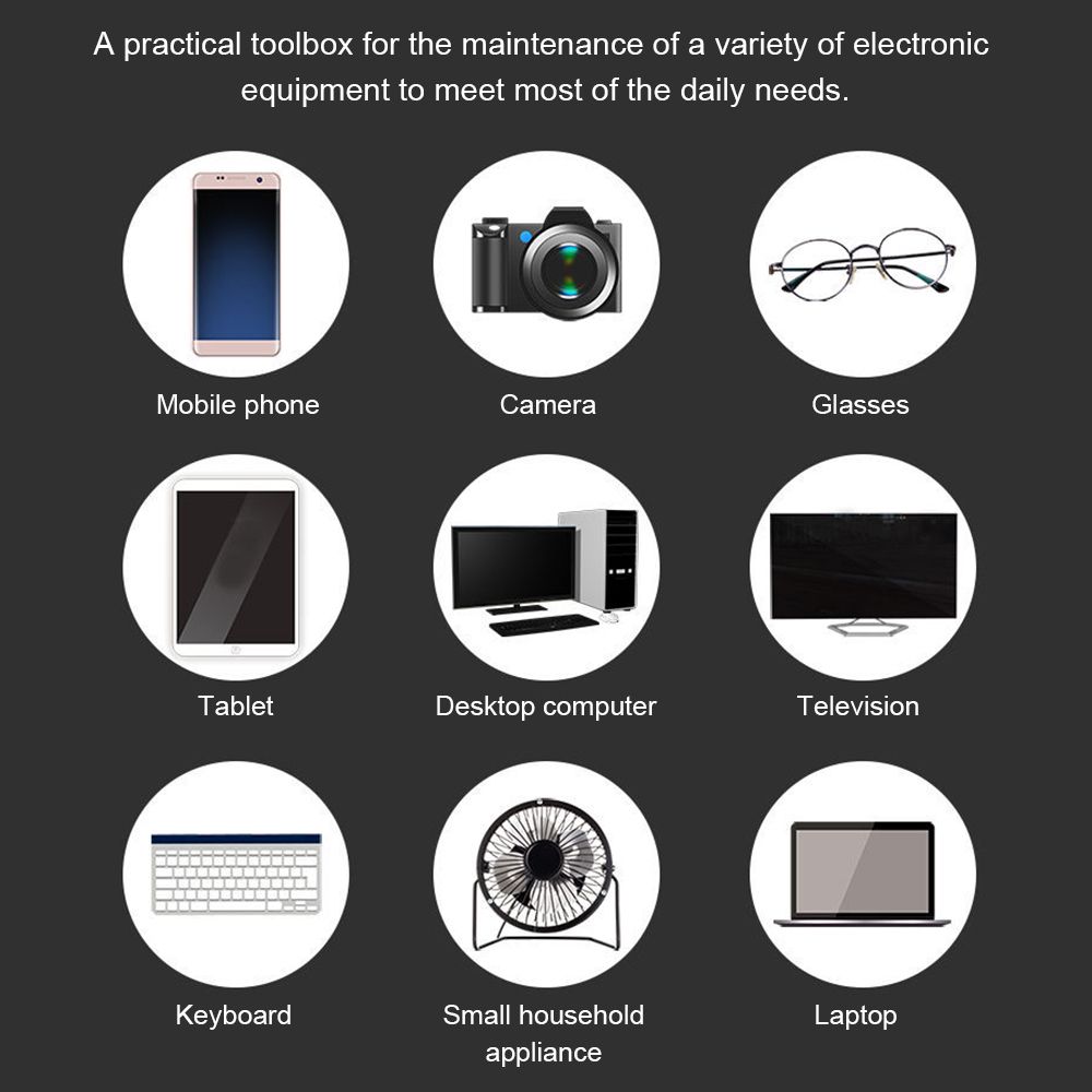 A practical toolbox for the maintenance of a variety of electronic equipment, such as mobile phones, cameras, glasses, tablets, desktop computers, televisions, keyboards, small household appliances, laptops, quartz watches, etc., meeting most of the daily needs.