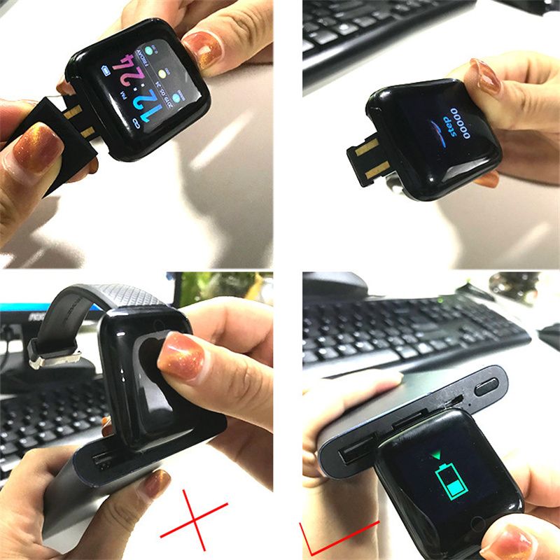 - Note - This watch does not come with a charger, it has a built-in USB port, please carefully remove the watch strap so that you can see the USB port, you can easily connect any laptop, PC, mobile phone to charge.