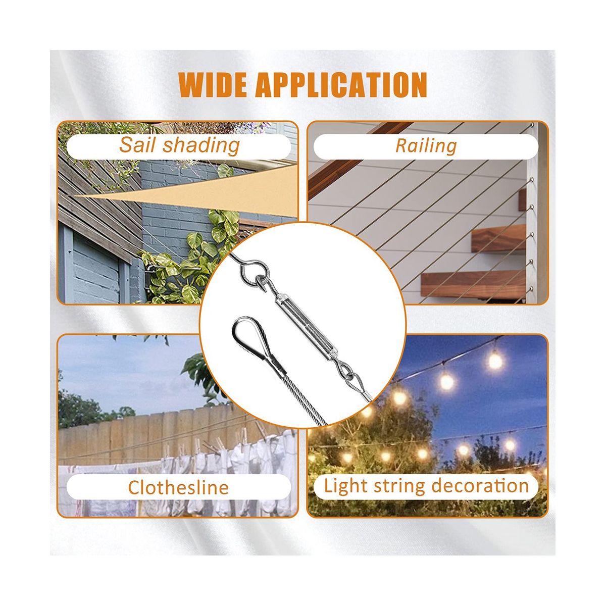 Can be widely used in decks, railings , hanging outdoor lights,picture hanging and clothesline.