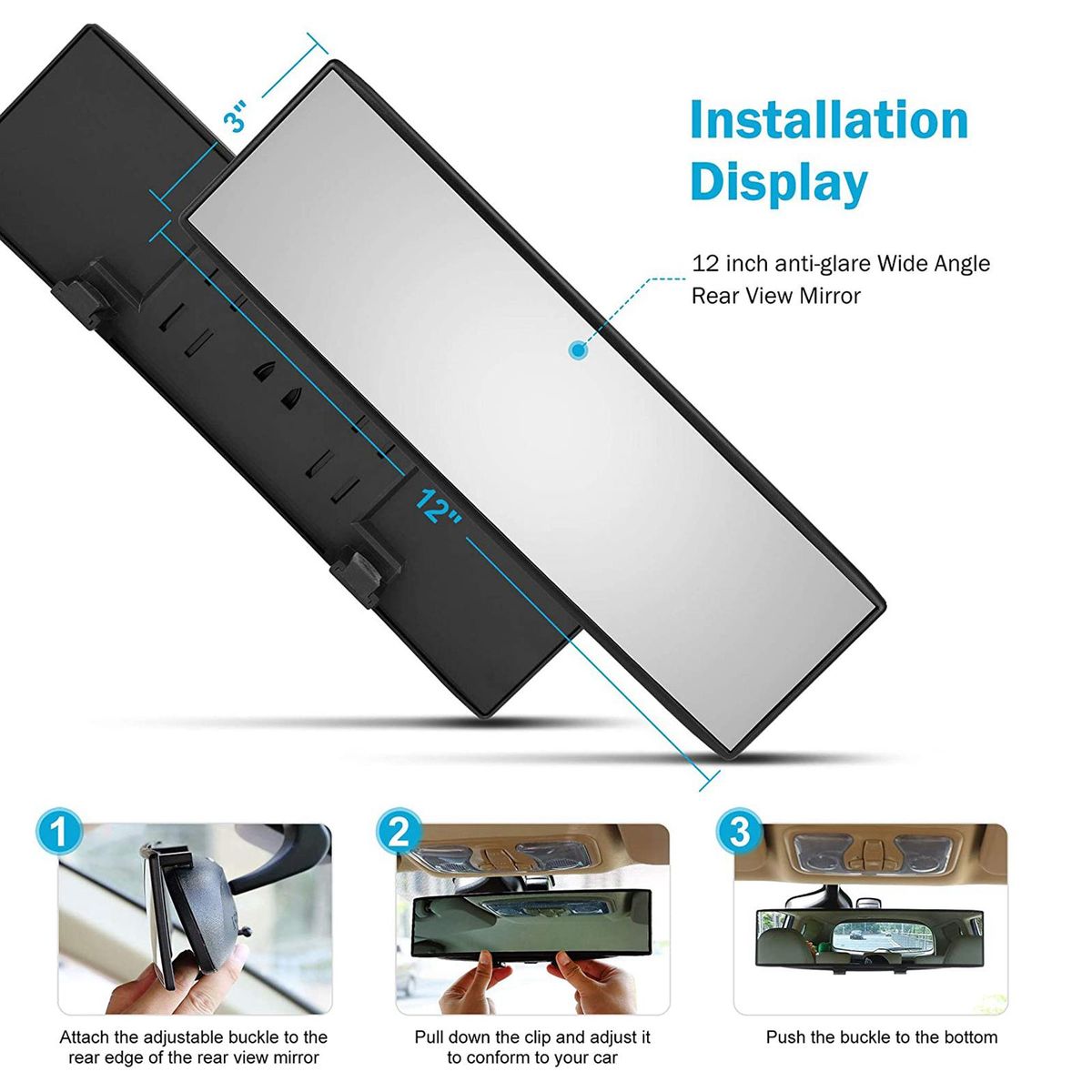 Easy Install -This car mirror comes with two adjustable buckles. Just touch you can fix it on your original interior rear view mirror. Easy to install and disassemble. You are able to complete it within without any tools