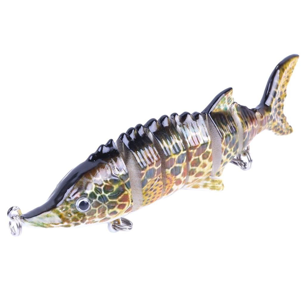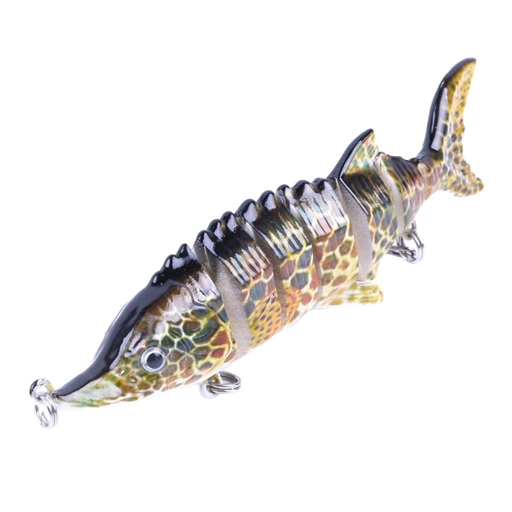 7 Segment jointed body swim bait enhances the life-like swimming action, move flexible makes it a prime target for hungry fish.ABS plastic body, reusable & eco-friendly; bright color and patterns make it more attractive.Well-designed triple hooks, better to catch the fish.Targeting at predator fishes such as bass, yellow perch, walleye, pike, roach, trout and etc.Great for ocean boat , ocean rock , ocean beach , lake, river, reservoir, pond and stream.