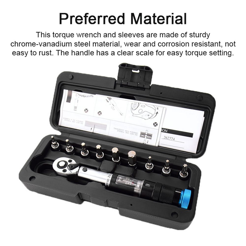 Preferred Material: This torque wrench and sleeves are made of sturdy chrome-vanadium steel material, wear and corrosion resistant, not easy to rust. The handle has a clear scale for easy torque setting.