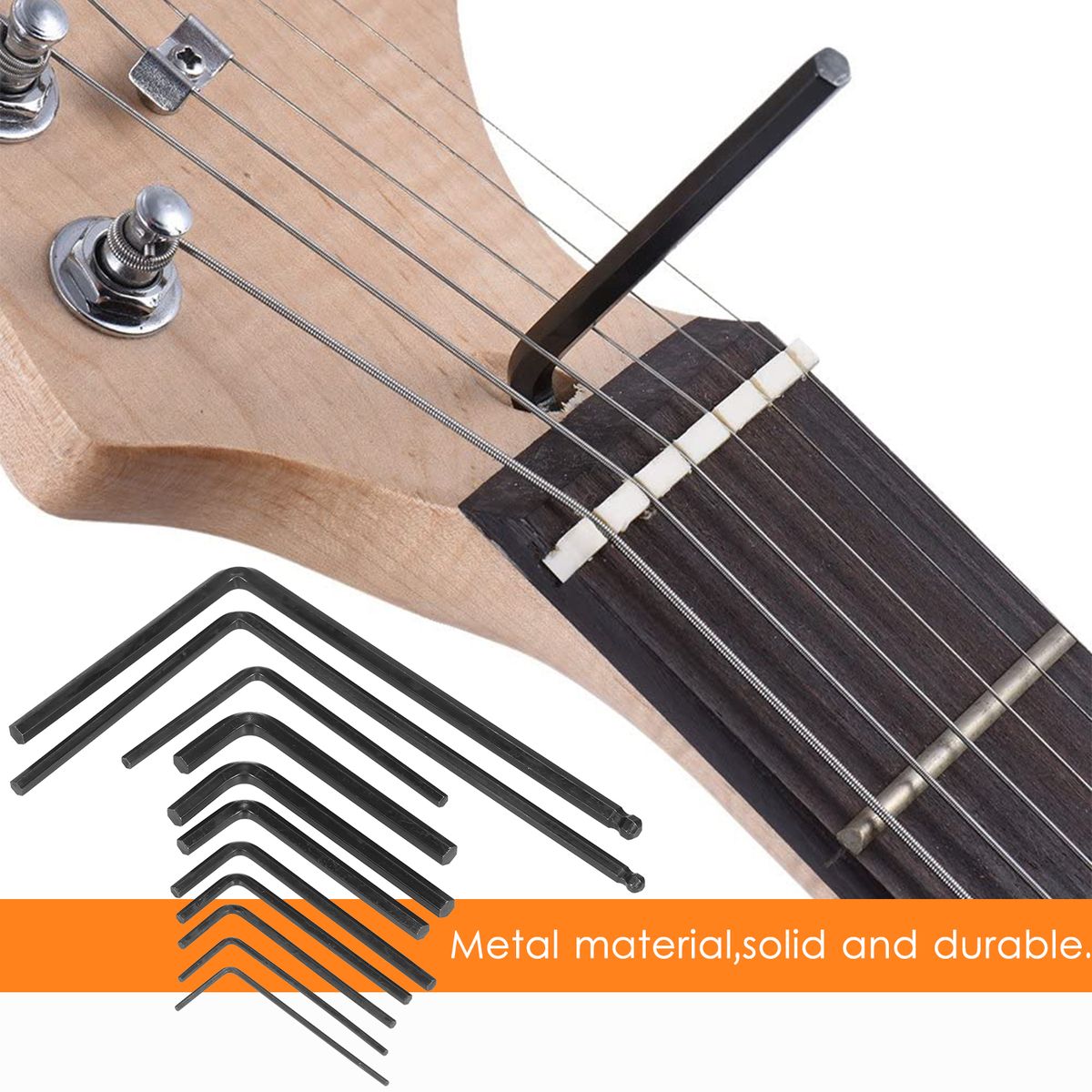 1.5mm, 2.0mm, 2.5mm, 3.0mm, 4.0mm, 5.0mm, 1/20in, 1/8in, 3/16in, 9pcs guitar wrench.