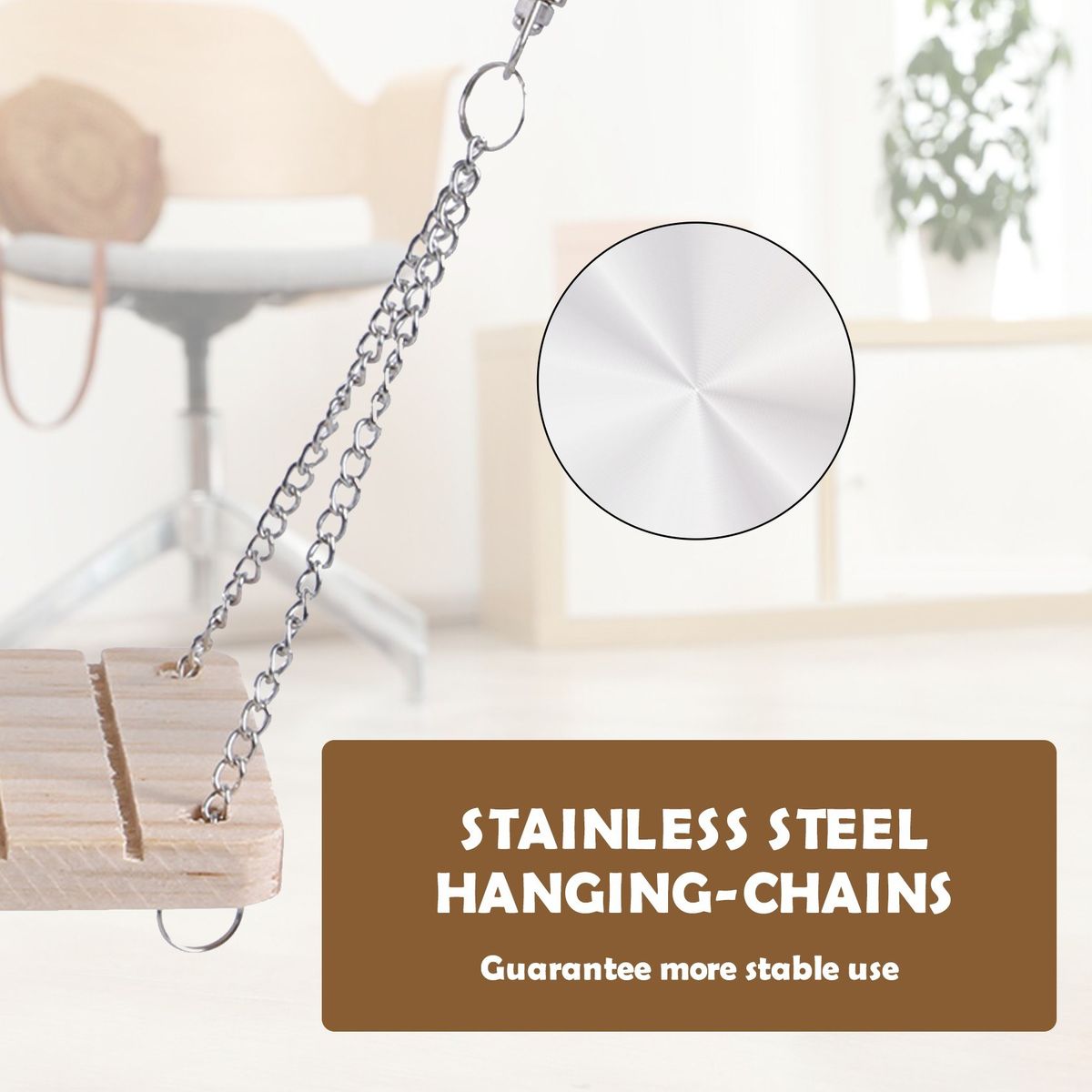 The retractable tunnel can be extended up to 100cm/39.4 quot;. The swing with skid-resistant groove-design against accidental falls. Stainless steel hanging-chains guarantee more stable use.