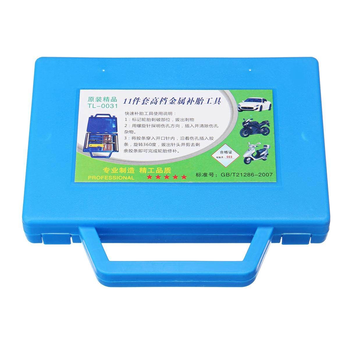 : . Material: Metal and plastic. Size: Approx. 12.6 x 9.5 x 1.5cm/ x x inch (LxWxH). High quality with strong strength and maximum endurance. Not easy to deform. Can easily stick through tire with spiral design to clean the debris conveniently and easefully. Easy to use and store. Suitable for different cars, motorcycles and electric vehicles. Packing Included: 11 X Heavy Duty Car Motorcycle Tyre Repair Kit