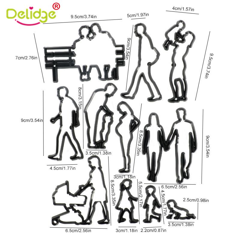11Pcs Plastic Family Cookie Cutter Baby Children Birthday Cake Decoration Accessory People Pregnant Woman Man Fondant Mold