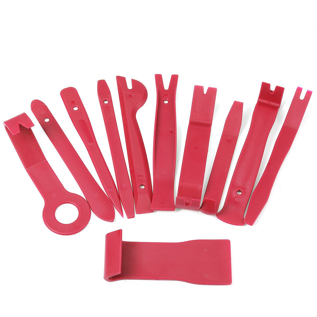 This trim removal tool kit is designed for helping someone to get his interior and exterior car modification easily and safely. Completely 11pcs triming tools can be used for install and remove car audio system, dashboard, door panels, upholstery panels, fasteners and accessories without any damages to them. Made of premium material, lightweight and durable.