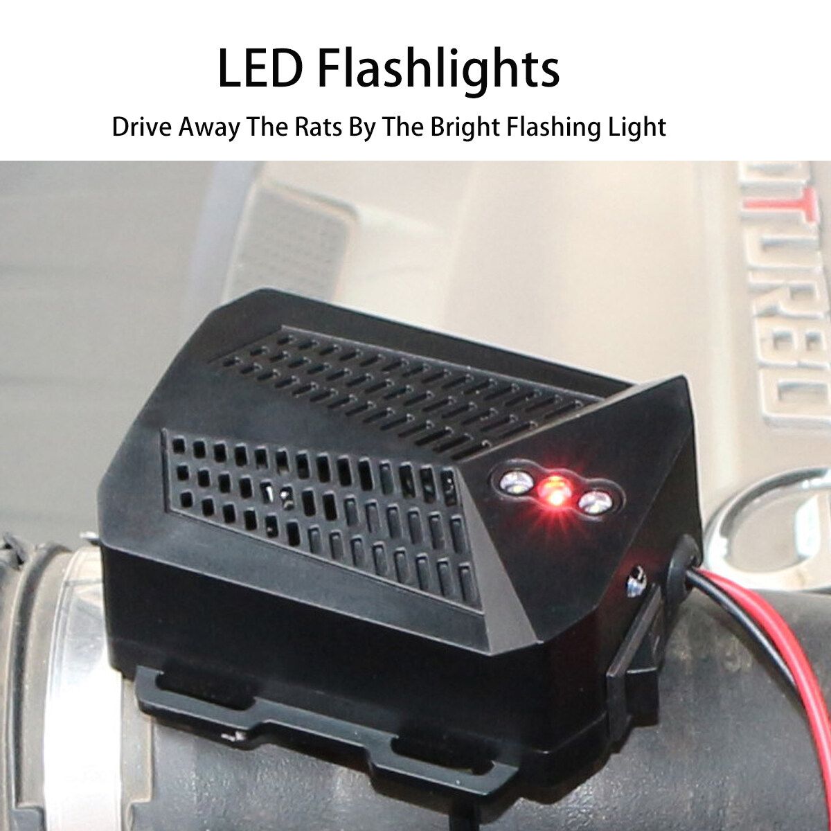 3.Combination : 12-25 KHz Ultrasounds and LED flashlights deters pesky animals entering your vehicle.
