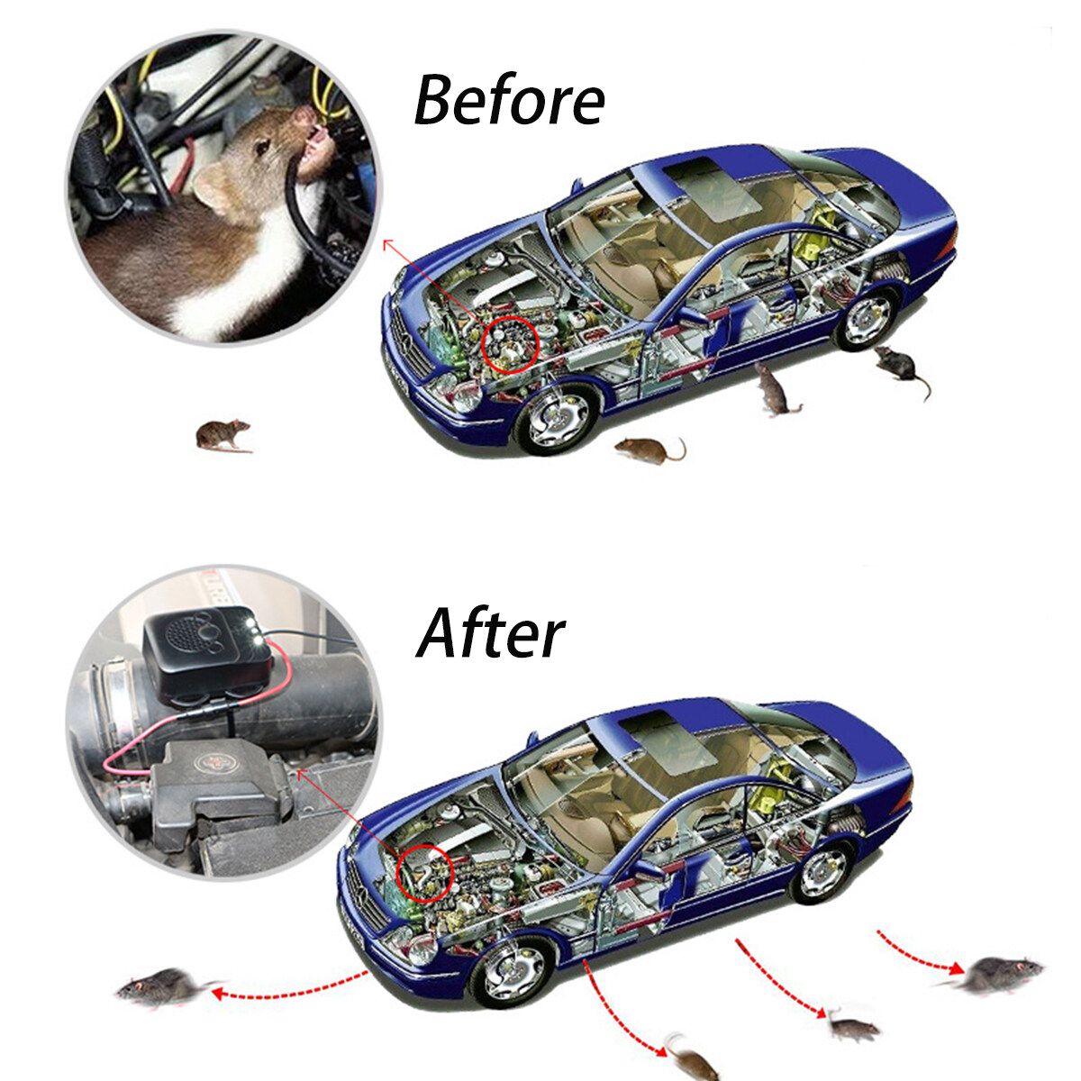 4.Eco-Friendly Repel Pests: The vehicle pest effectively uses ultrasonic vibration to make repel pests and animals without killing or seriously injuring them.