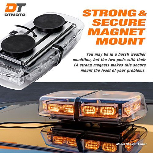 Color Blue BlueFeatures SUPER BRIGHT VISIBILITY Be seen day or night with the dazzling 36 watts of power from 12inch light bar Your safety is protected by 36 highintensity LEDs working together to provide maximum visibilityPLUGANDPLAY CONVENIENCE Nothing could be easier to use Just insert the adapter plug into a standard 12V DC cigarette and place the LED Mini Light Bar on your roof Harnessing the combined strength of 14 magnets two pods make mounting convenient fast and secure 10 feet of power cord included17 UNIQUE FLASH PATTERNS Select from 17 distinctive flash patterns including Single Flash Double Flash Quad flash Clockwise Rotation Counterclockwise Rotation and multiple combination modes Memory Recall Function lets you use your most recent flash pattern with the click of a switchIP66 WATERPROOF RATING Made for exterior mounting LED Mini Light Bar will work when you need it no matter how bad the weather This unusually high IP rating was granted when tests revealed that the LED mini light bar suffered no harmful damage from exposure to dust and powerful water jetsBEST BRIGHTNESS FOR THE BUCKS Whether youre a volunteer fireman on a budget or a cashstrapped police department you will not find a more economical and brighter visibility lighting solution Perfect for EMTs construction workers and traffic crewsDetails 36 watts of powerful visibility in all weatherDesigned for the most challenging conditions the 12inch light bar provides a superior strobe warning light solution Even in the pouring rain the professional grade construction and IP66 waterproof rating of LED mini bar enables safe exterior mountingHard to break easy to useThis LED mini bar keeps it simple To operate connect the heavyduty adapter plug into the cigarette 12V DC You may be in a difficult situation but the two pods with their 14 magnets makes a secure mount the least of your problems Then all you have to do is select from 17 builtin flash modes or use your favorite by clicking the Memory Recall Function switchEconomical bright strobe warning lightGet the brightest light for the fewest bucks You dont have to spend big to make sure that your LED mini light bar is safely seen by other divers on the roadFeatures36 powerful wattsPlugandPlay Convenience17 flash patternsIP66 waterproof toughnessBrightest visibility lighting solution for the pricePackage Includes1 x DT MOTO 12 36W LED Mini Light Bar wMagnets AttachedInstruction ManualPackage Dimensions 135 x 77 x 31 inchesBinding Automotive