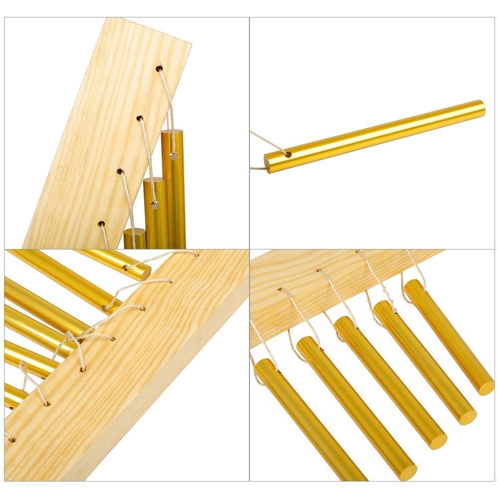Made of high quality aluminum tube with clear and pleasant sound and environment-friendly material wood, waterproof, wind- and dust-resistant and free from color fading.