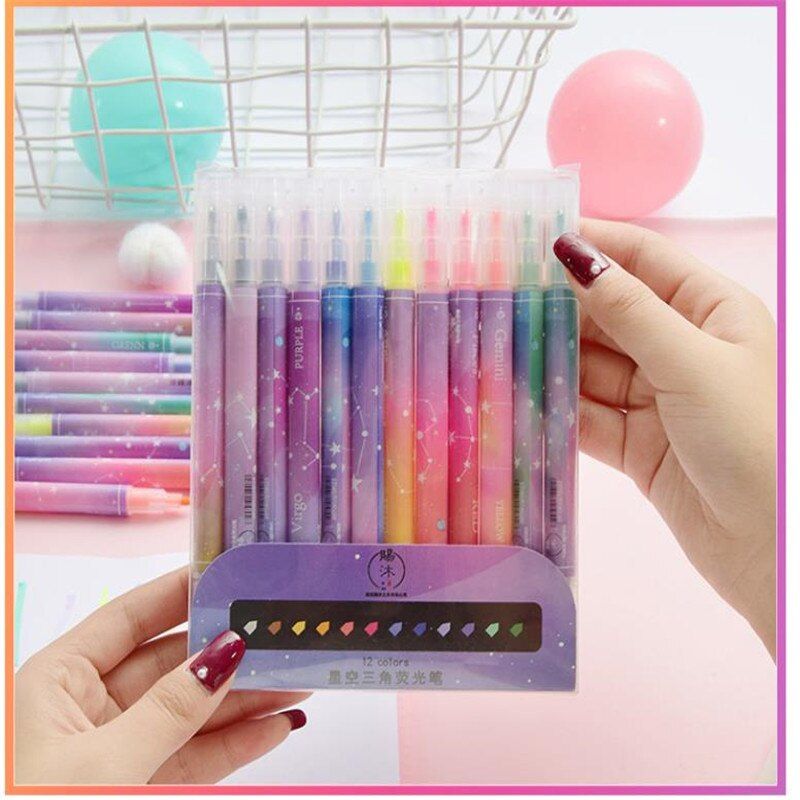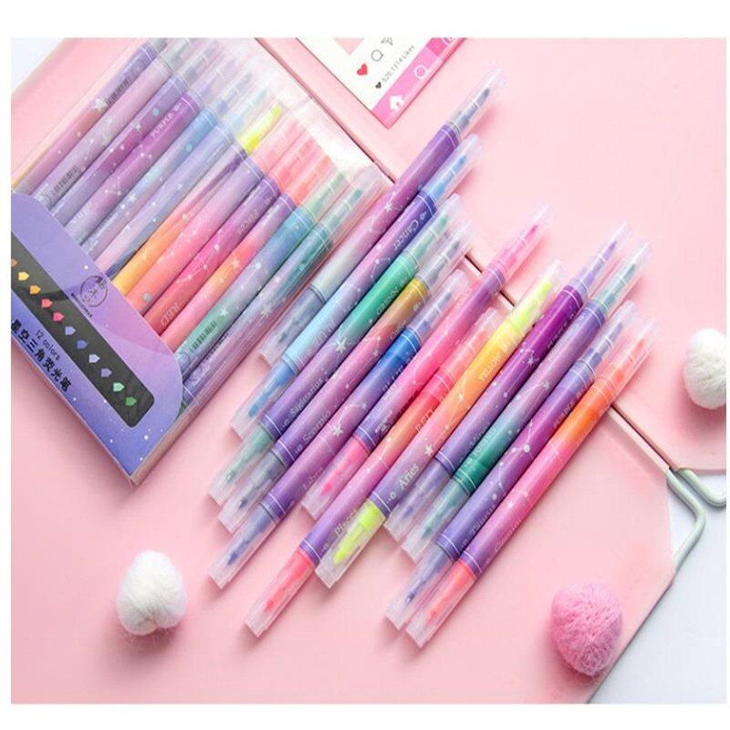 Buy 12 Colors Double-headed Highlighter Painting Pen Cute Diary in Nigeria