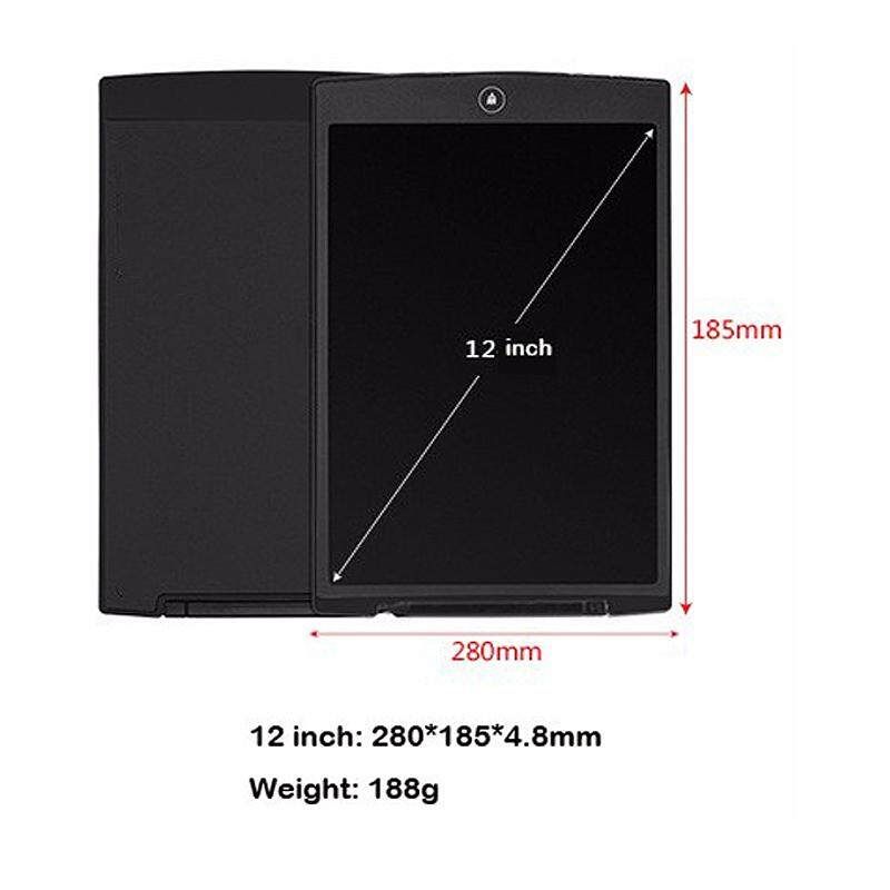 Ultra 1/8 thin inch,12 inch LCD writing table.Dimensions 28x18.5x0.5cm. Sealed 3v watch provides over 50,000 erase cycles.and it can be replaced
