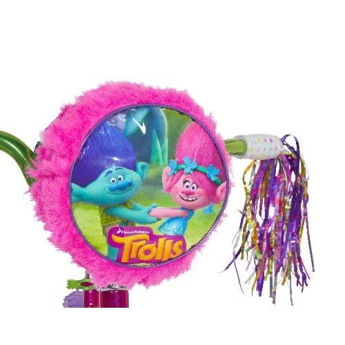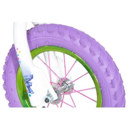 Delight any little girl in your world with this Troll-themed bicycle with a plush handlebar bag to hold her Troll collection as she rides. The bike features a coaster-style brake, an adjustable seat, and training wheels, making learning to ride this fanciful bike a breeze.