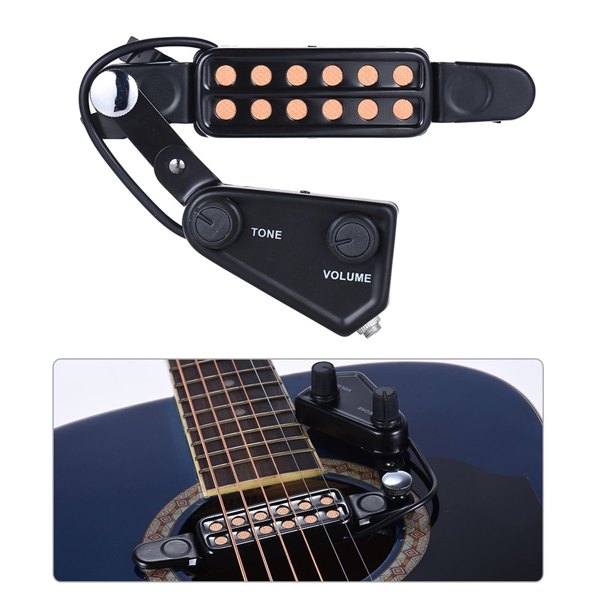 Features:Acoustic guitar pickup with 12-hole magnetic transducer, can capture vibrations quickly.