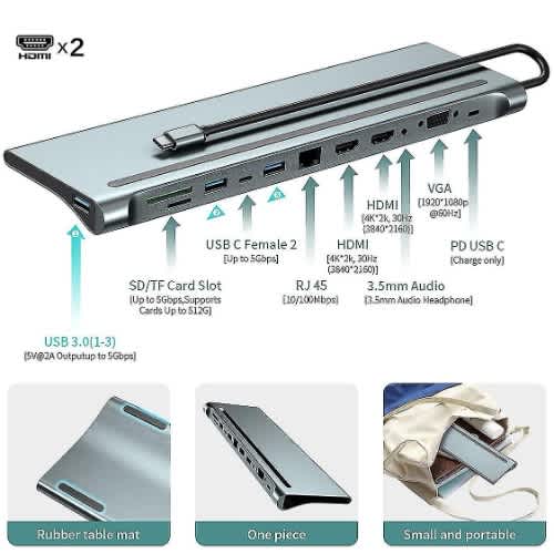 Buy 12 In 1 Usb 3.0 Type C Laptop Docking Station Pd Vga 4k Hdmi Usb Hub For Macbook in Nigeria