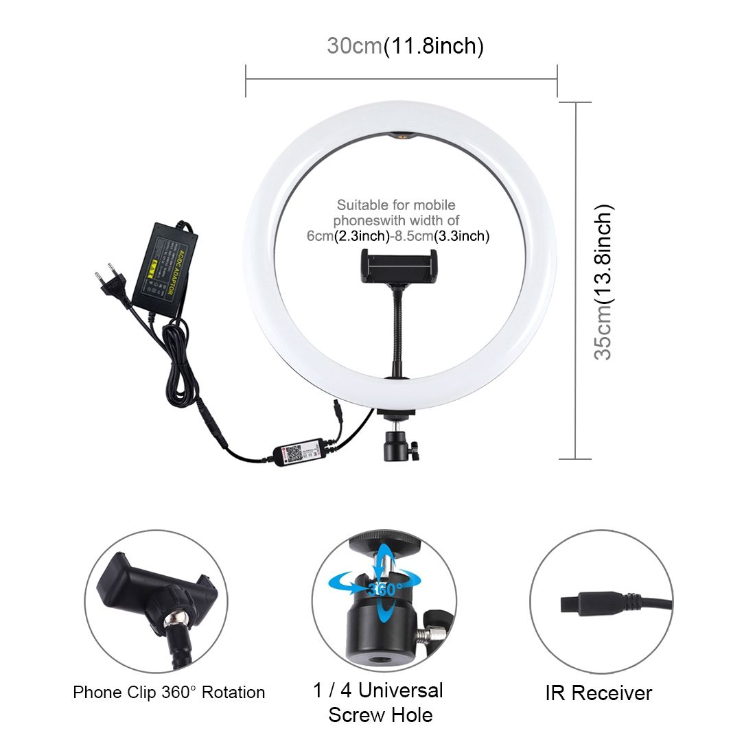 Buy 12 Inch RGB Dimmable LED Ring Vlogging Selfie Photography Video Lights(EU Plug) in Nigeria