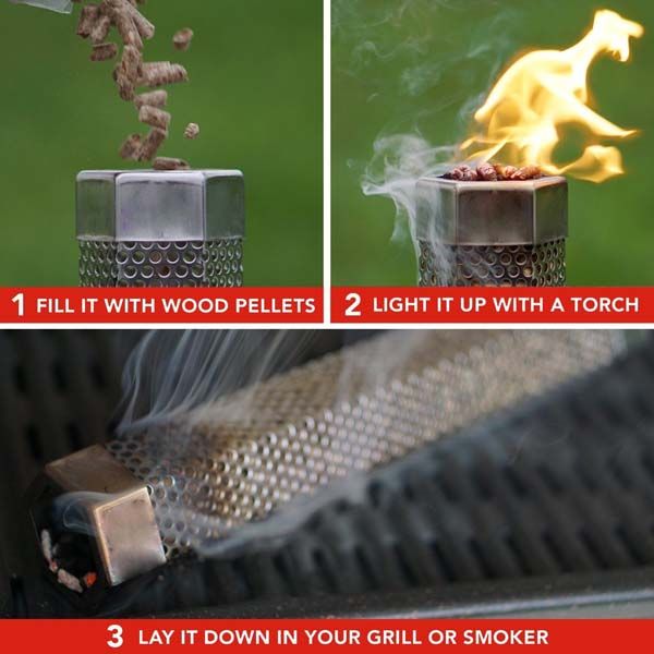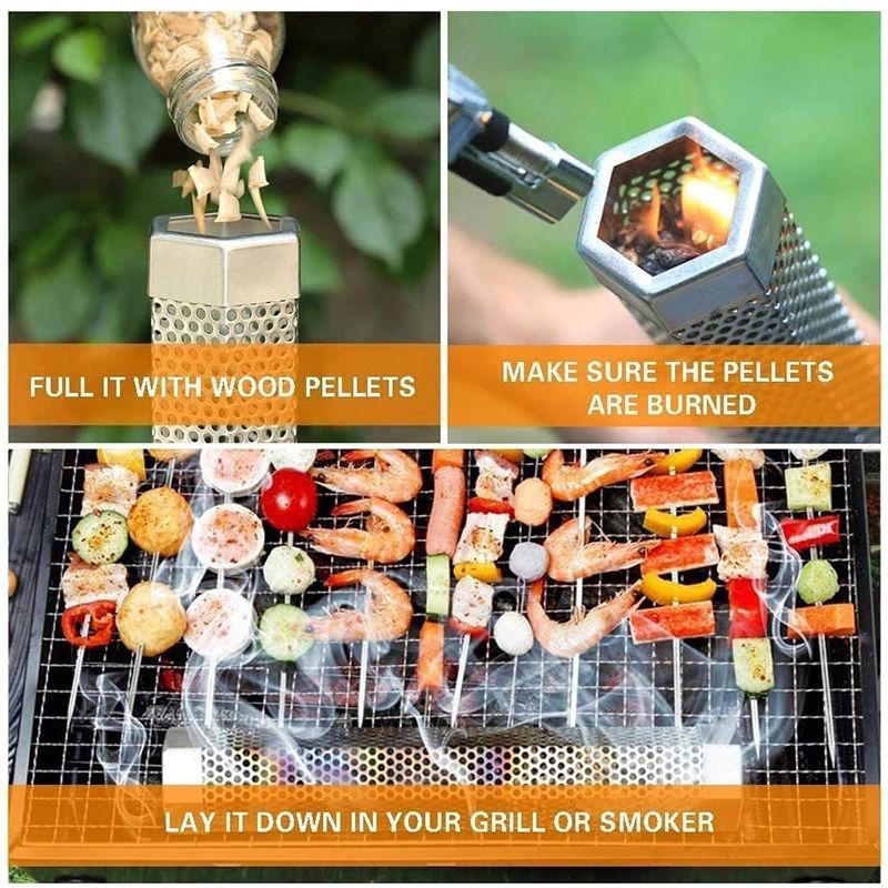 3. Easy to use, fill the pellets or smoking sawdust, ignite it with fire for 1 minute, make it burn for about 3-5 minutes, and then put the test tube on the grill.