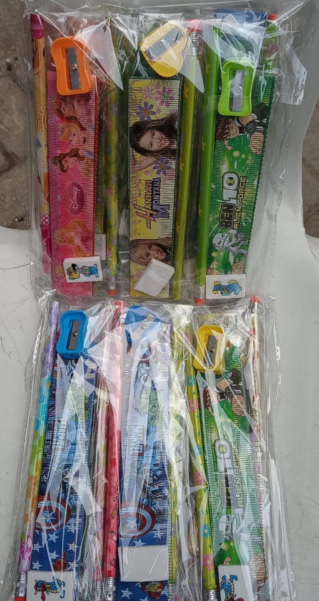 It also comes with pencil having different body cartoon characters on it as they need the pencil to write both in school and at home.