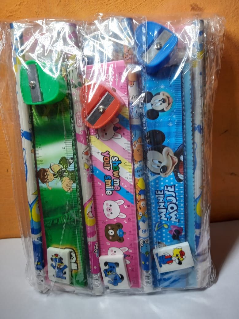 - 12 Kids Party Gift Pack-Writing Set Ruler+Pencil+Eraser+Sharpener