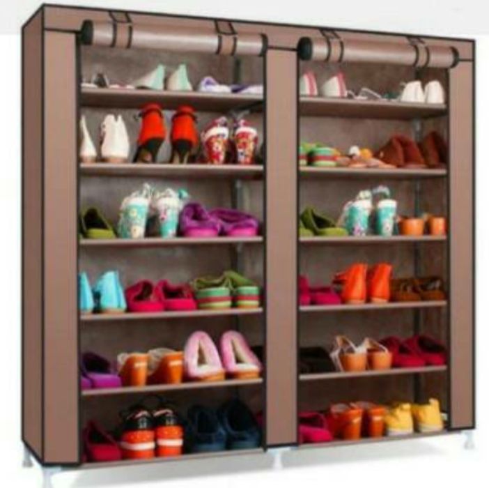 Wardrobe Shoe rack is a perfectly designed space-saving canvas shelve shoe rack Easily closed or rolled up by the two zippered doors, it is rather tidy and allows free access for the guest/spare bedroom, university students, caravan and wherever a quick clothing solution is needed.Non-woven canvas-effect cover makes free breath-ability for clothes and discourages mold growth unto clothing's.Easy to wipe, clean and maintain with large capacity easy to move about.