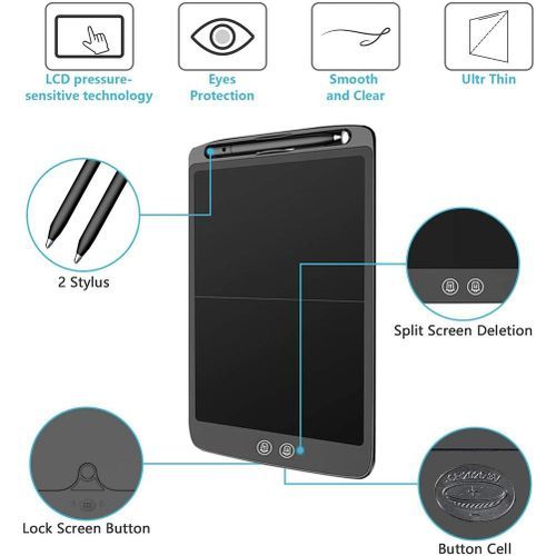 Easy to Use and Carry: A drawing pad for kids is like an endless sheet of paper! Doodle pad can be scribbled over and over again, saving at least 10,000 pieces of paper a year. The 12 inches size of lcd writing tablet would make it easy to be taken out everywhere. Drawing boards can be used in schools, offices, cars, homes and other places.