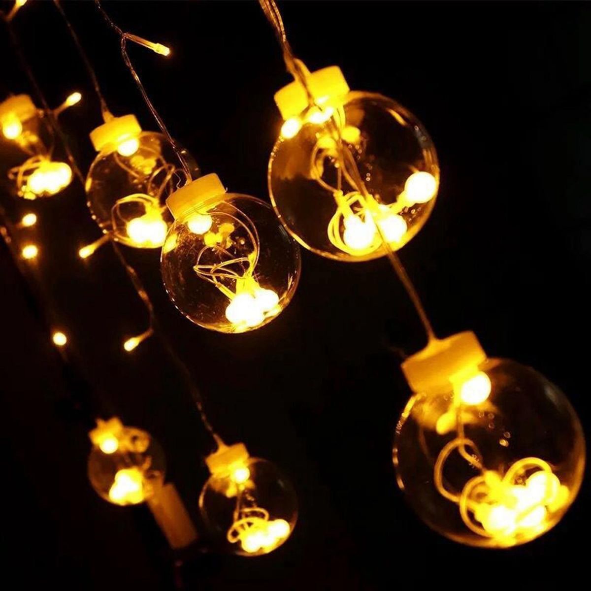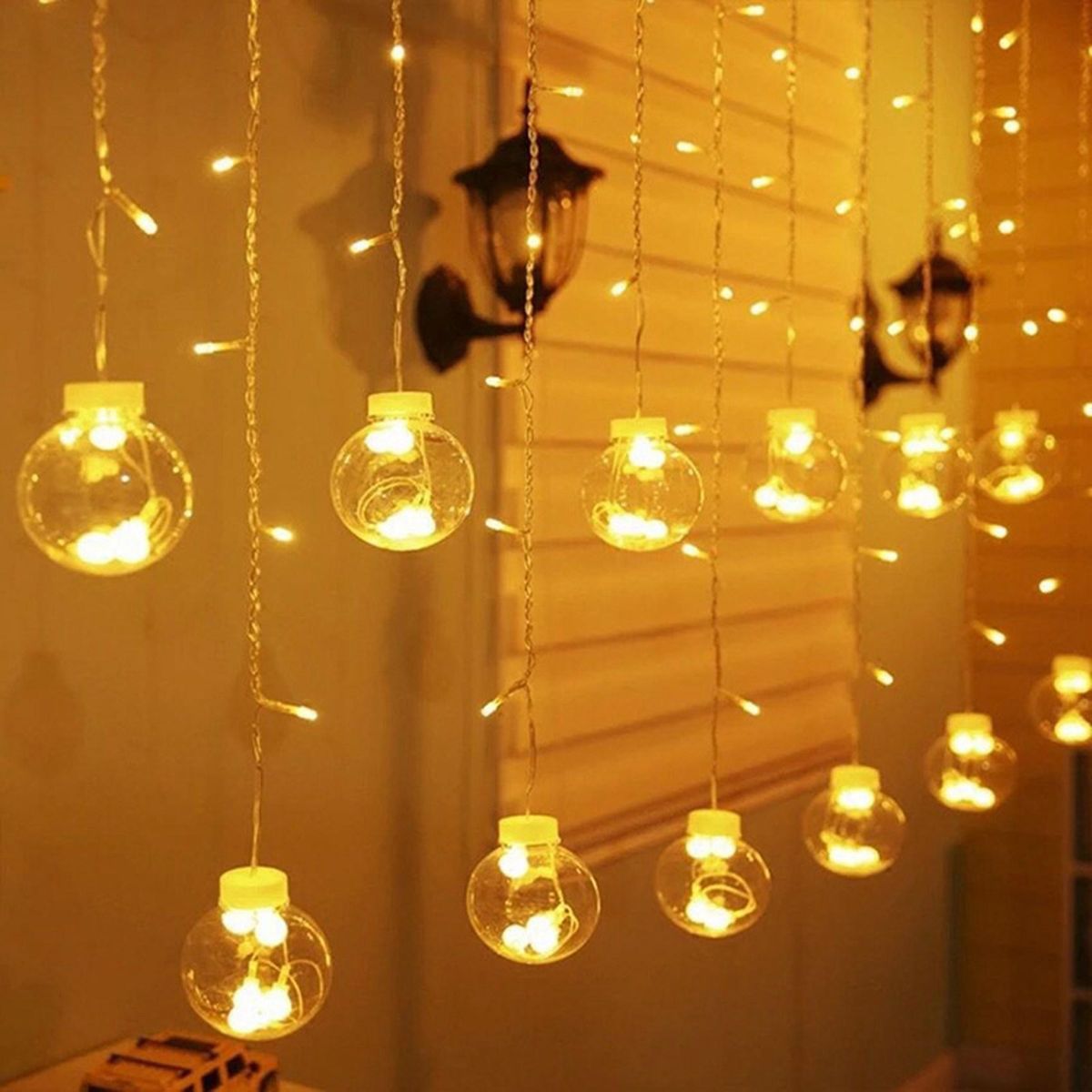 Our LED curtain lights will present you a wonderful scene with 12 twinkling wishing ball ornaments. It is the perfect decoration for Christmas, Halloween, parties, camping, weddings, birthdays, holidays and other occasions.
