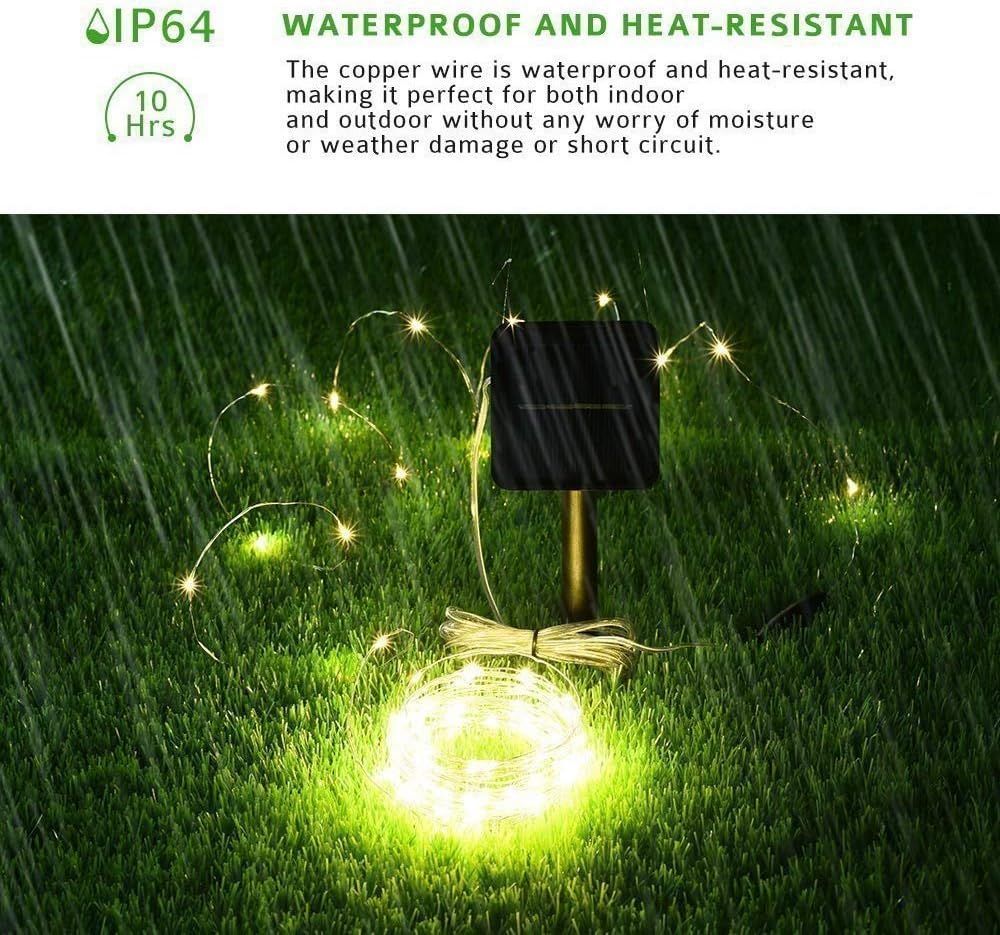 [Flexible copper thread light]: This solar lamp is made of soft copper thread. They are easy to shape, and they are also gifts for gifts and home decoration. Wrap the wire around the bushes and will be hidden. Then the lights are turned on, you can see that the lights flash like the stars in the sky; when do DIY, the copper wire is bent into any shape, such as the heart and the pentagram. Hanging on the tree makes your home more comfortable. Making craftsmanship will make your child a happy childhood.