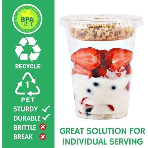 100% Food Safety PET Plastic. Safe for cold drinks and food.