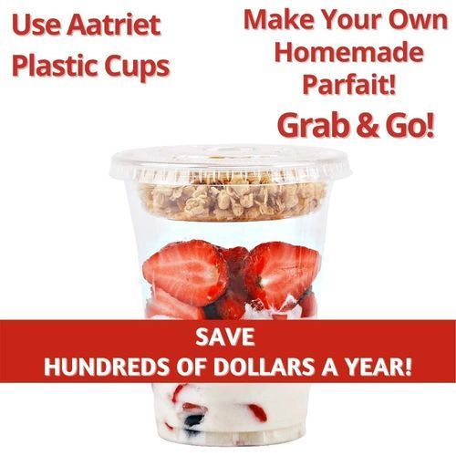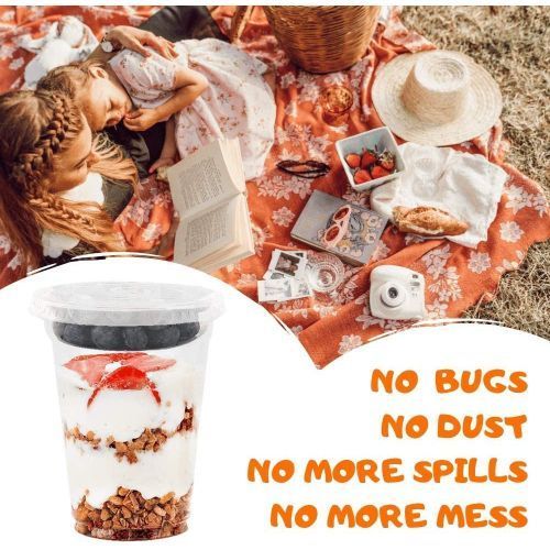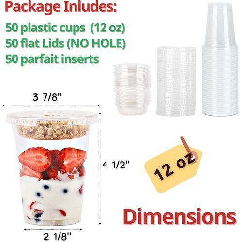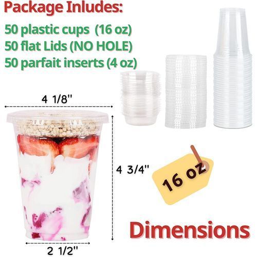 - ✔️A MONEY SAVER. Save a lot of cash by making your own fruit parfait for the children. Good way to get rid of all the fruit they don't eat when it's still in the fridge packaging. Total 150 pieces include 50 cups, 50 no-hole flat lids and 50 insert.