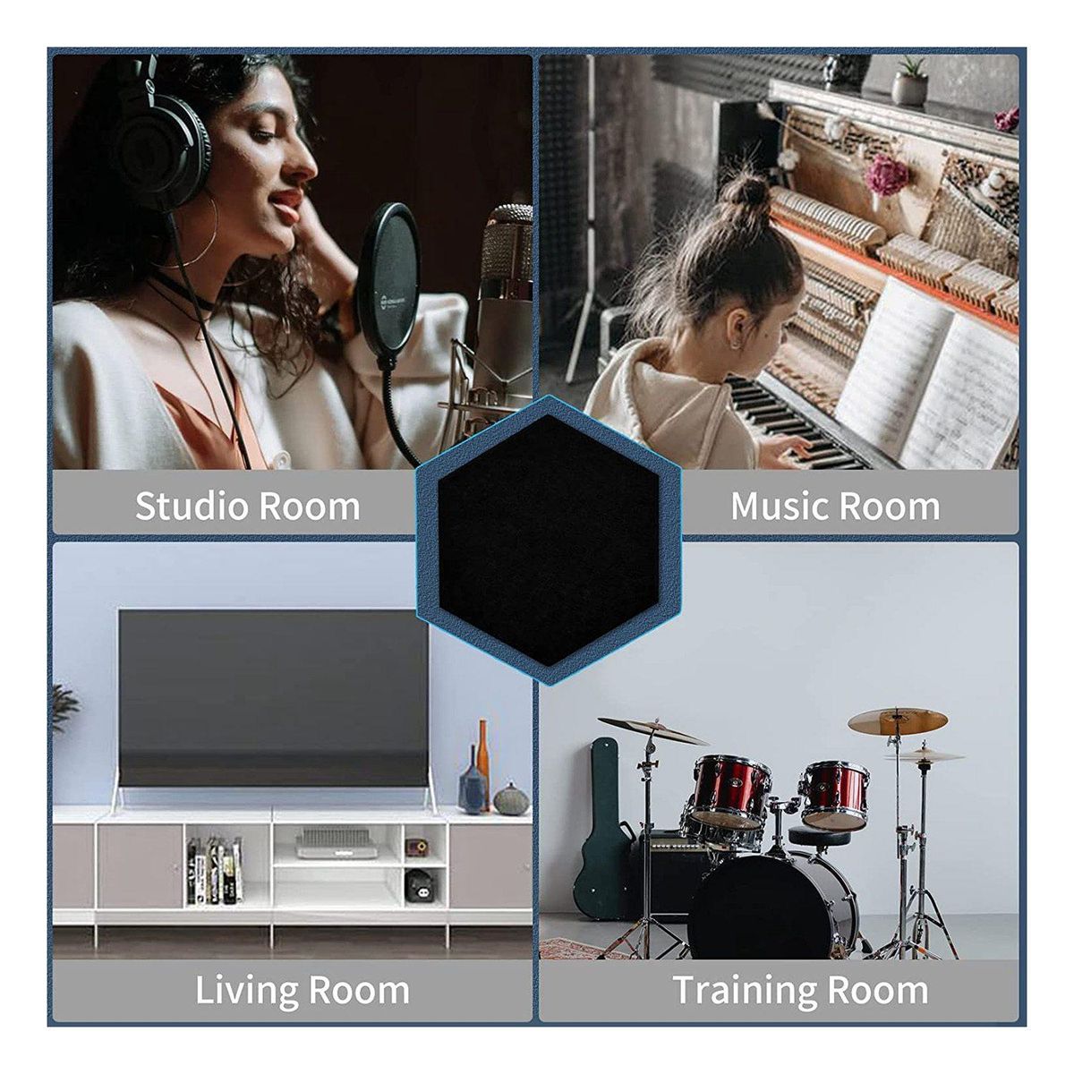 With honey comb design, our sound proof padding is great for room decoration and acoustic treatment. The unique acoustic panels adopt beveled edge design, which can not only reduce sound, but also provide an aesthetic appearance.