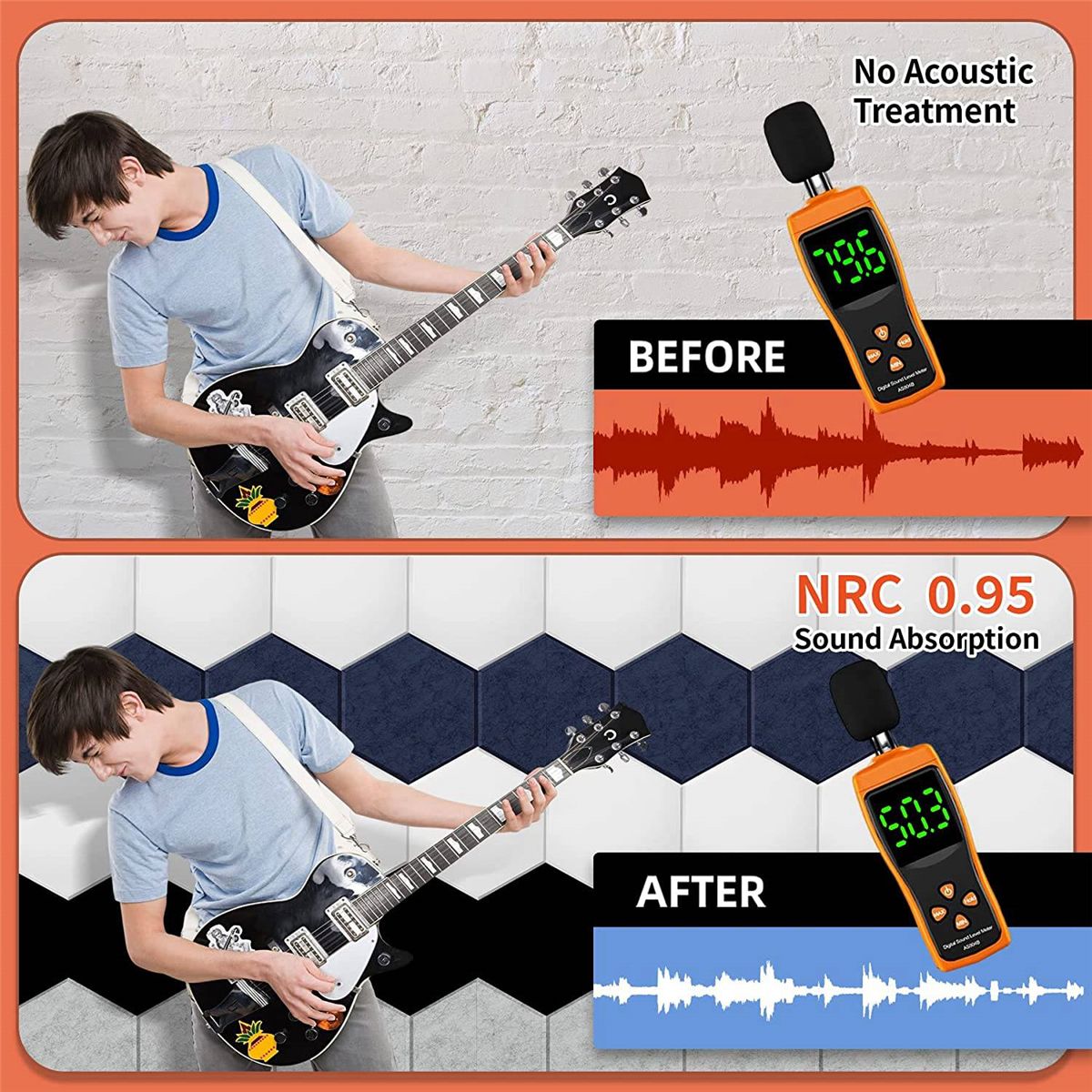 Let You Hear Your Wanting Sound Acoustic panels are perfect for reducing the noise and reverbs The sound absorbing panel eliminates unwanted sound to make other wanting sounds much clearer in professional studios As if you listen to the singer singing face to face PLS NOTE the limited soundproof in a room "Sound-proofing" is another professional field
