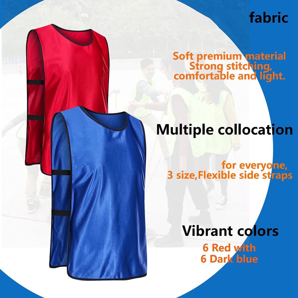Colors:Two kinds of collocation ,6 red and 6 blue,.The bright color helps to quickly identify your teammates during sports matches or team training.